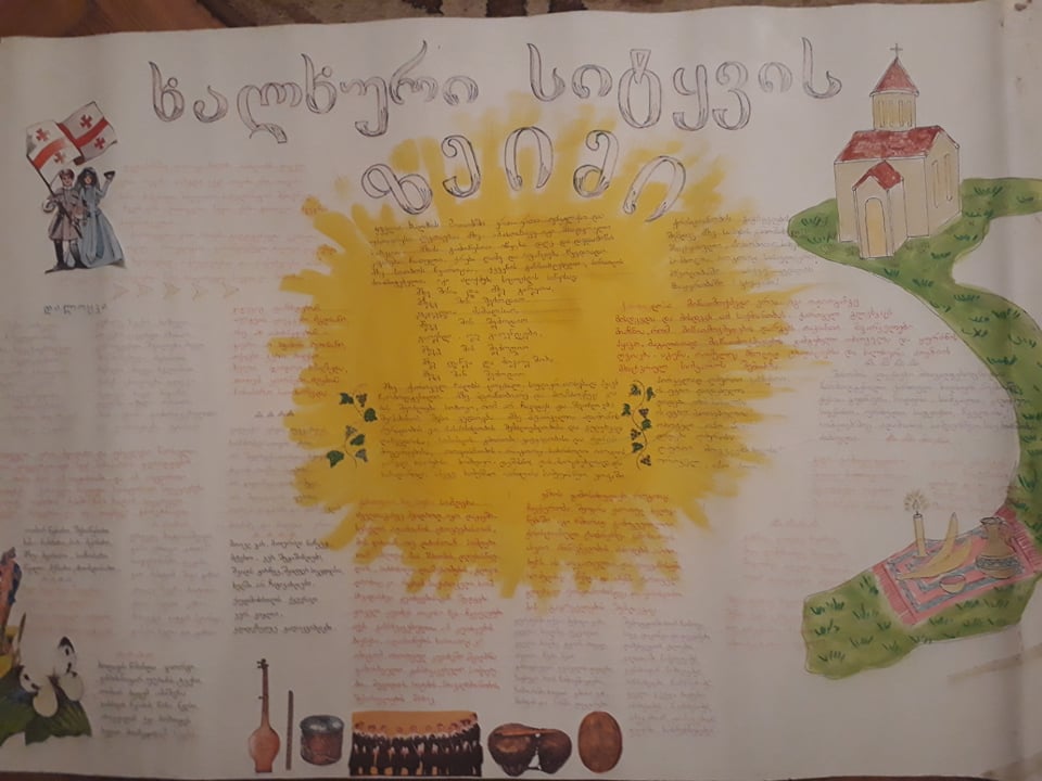 დაინიშნა ოთხი შეხვედრა, კლასი დაიყო ჯგუფებად და თითოეულ ჯგუფს მიეცა თავისი დავალება და შესრულების ვადები. გზადაგზა ტარდებოდა მონიტორინგი და ამზადებდნენ შესრულებულ დავალებებს. ბოლოს მოახდინეს შეჯამება. მოსწავლეებმა წარადგინეს სლაიდ-შოუ, შექმნეს ფლაერი, გამოუშვეს გაზეთი, მოიტანეს მასალები მუზეუმიდან, ბიბლიოთეკიდან და სხვა. ბოლოს ჩატარდა შემაჯამებელი ღონისძიება, სადაც ხალხური შემოქმედება წარმოადგინეს საქართველოს კუთხეების მიხედვით. იგი ასახეს სიმღერებსა და ცეკვებში.