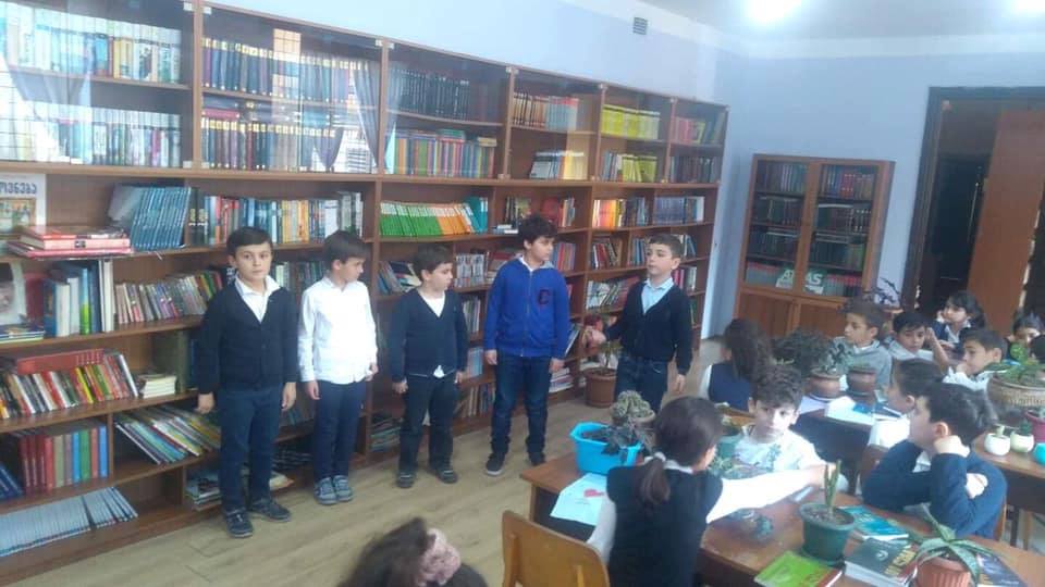 "პოეზიის ხუთი წუთი". 3-ე კლ. მოსწავლეებმა(ხელ.მ გორგილაძე) სკოლის ბიბლიოთეკაში გამართეს ღონისძიება : "პოეზიის ხუთი წუთი".ბავშვებმა ისაუბრეს და აღნიშნეს, რომ პოეზიის მხატვრული ლიტ-ის ერთ-ერთი ძირითადი ფორმაა.წაიკითხეს სხვადასხვა პოეტების ლექსები. ბიბლიოთეკარმა მ.ჭანტურიამ ბავშვებს ვრცელი და საინტერესო ინფორმაცია მიაწოდა.გააცნო პოეტები,წაუკითხა ლექსები. "პოეზია ოცნების ფენომენია და მას მეოცნეებები ქმნიან. ოცნების შეჩერება კი შეუძლებელია