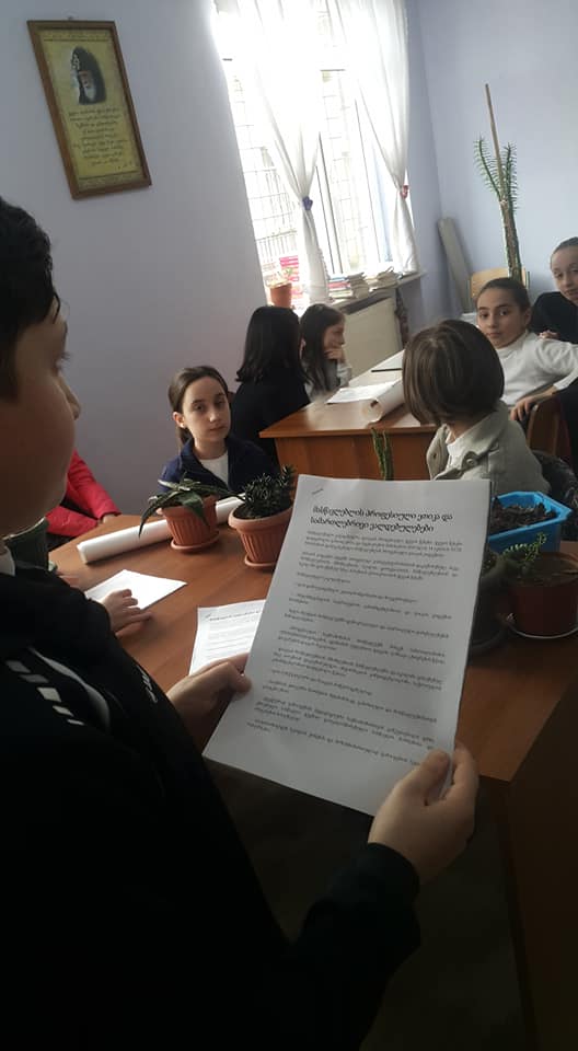დღეს, 30 იანვარს სსიპ-ქალაქ ბათუმის N8 საჯარო სკოლის 5-გ კლასის მოსწავლეებმა (დამრ.ნანა მალაყმაძე) წარმოადგინეს პროექტი "სკოლის უფლებები და მოვალეობები". კლასი მოვიდა წინასწარ მომზადებული პროექტებით, რომელიც თავადვე წარადგინეს.გაიმართა ჯგუფური დისკუსია.სასიამოვნოა ის ფაქტი, რომ ისინი გააზრებით მსჯელობენ.