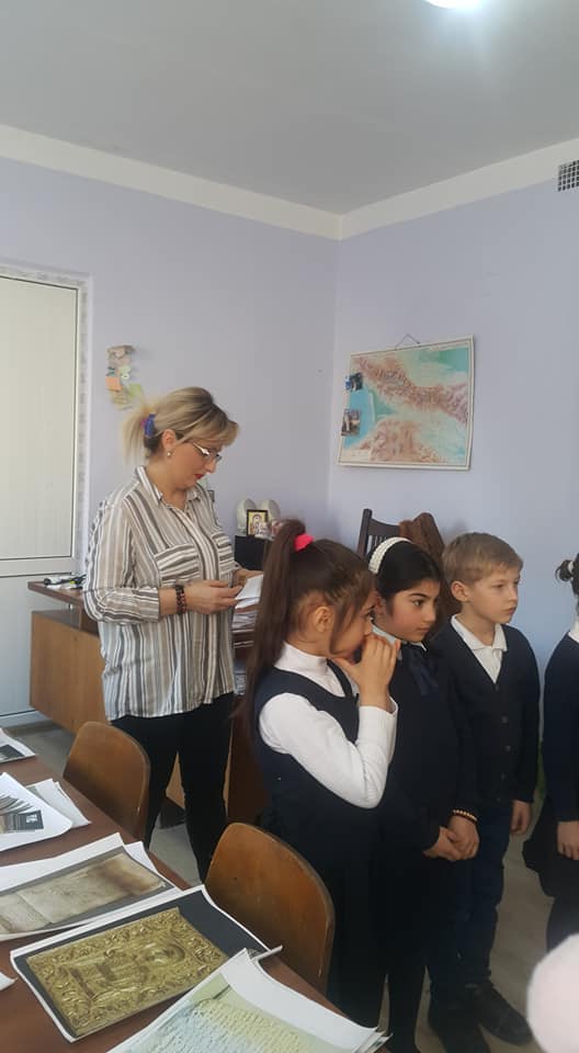 ბიბლიოთეკარმა მარიამ ჭანტურიამ ბავშვებს გააცნო წიგნის ისტორია, ესაუბრა მათ მნიშვნელობაზე.