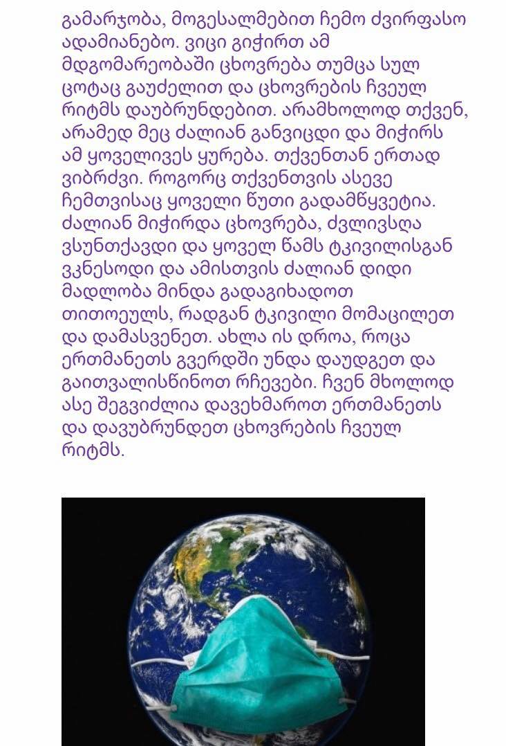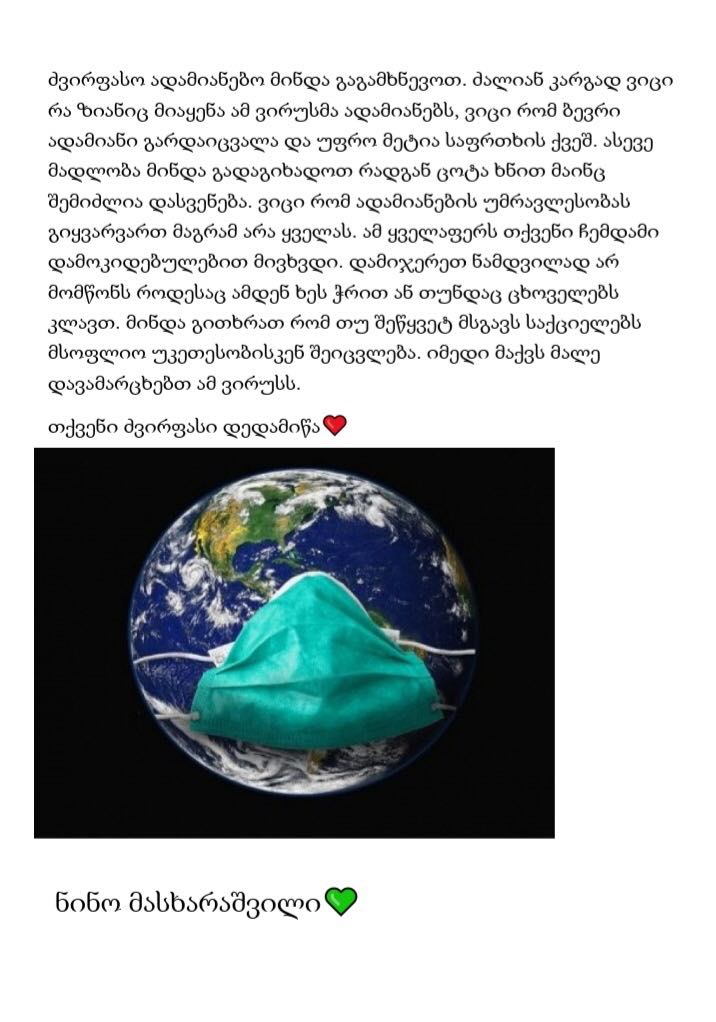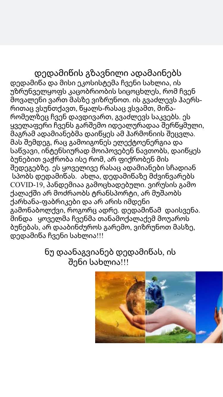 2020 წლის 22 აპრილს სსიპ-ქალაქ ბათუმის N8 საჯარო სკოლის მე-6 ბ კლასში ჩატარდა დედამიწის დღისადმი მიძღვნილი პროექტი დისტანციურად , სახელწოდებით- "დედამიწის გზავნილი ადამიანებს"