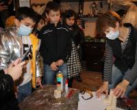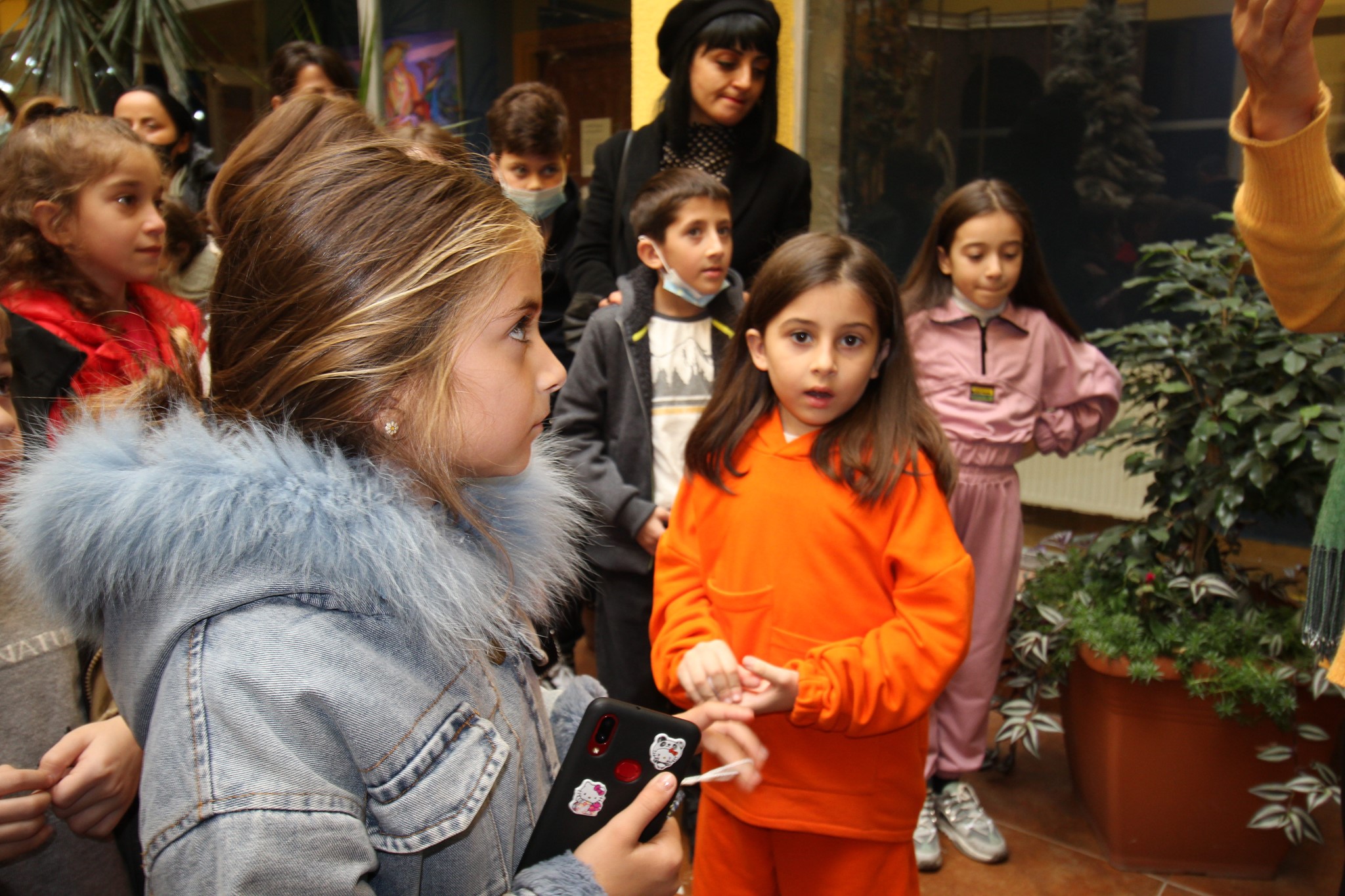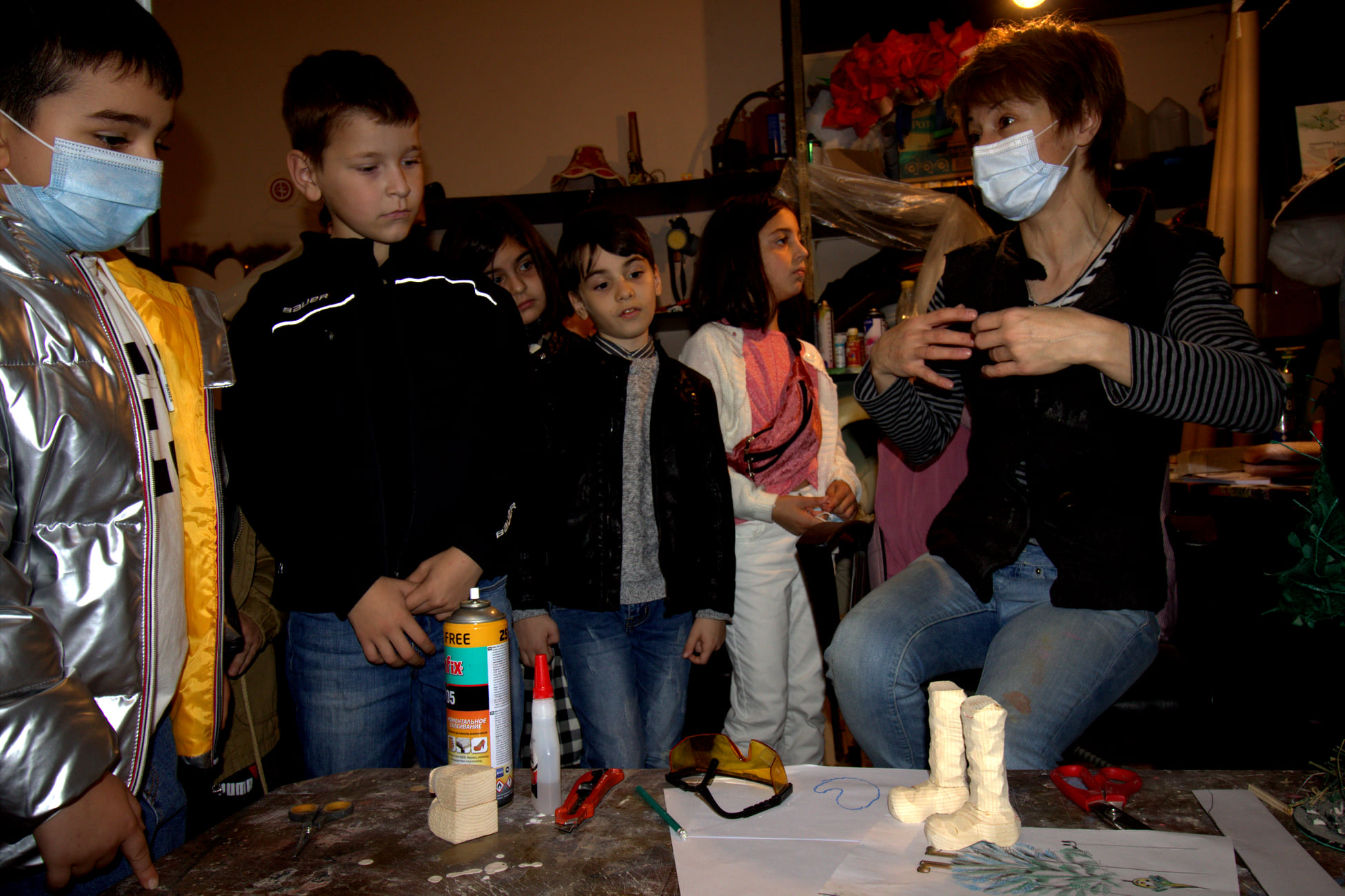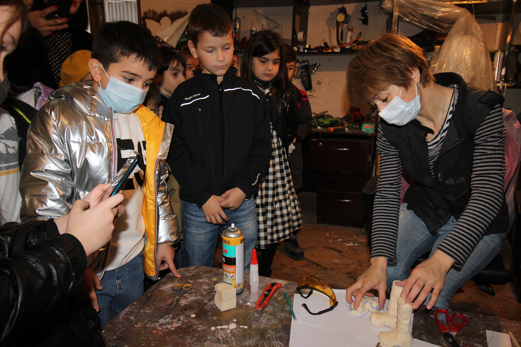 🟠 მოინახულეს თეატრის სახელოსნო, სადაც შეხვდნენ მხატვარ-შემსრულებელ მერი დარცმელიძეს. მასთან ერთად ისაუბრეს ესკიზის მნიშვნელობასა და სპექტაკლისთვის დეკორაციისა და თოჯინის შექმნის პროცესებზე.