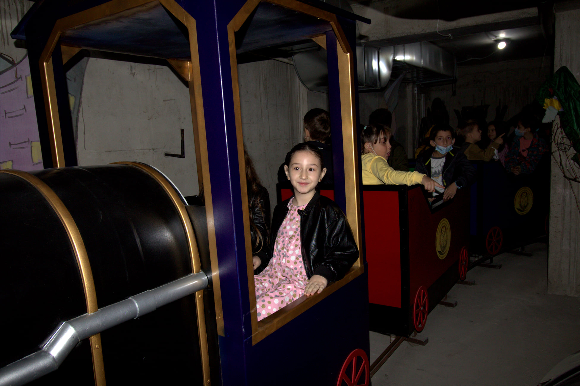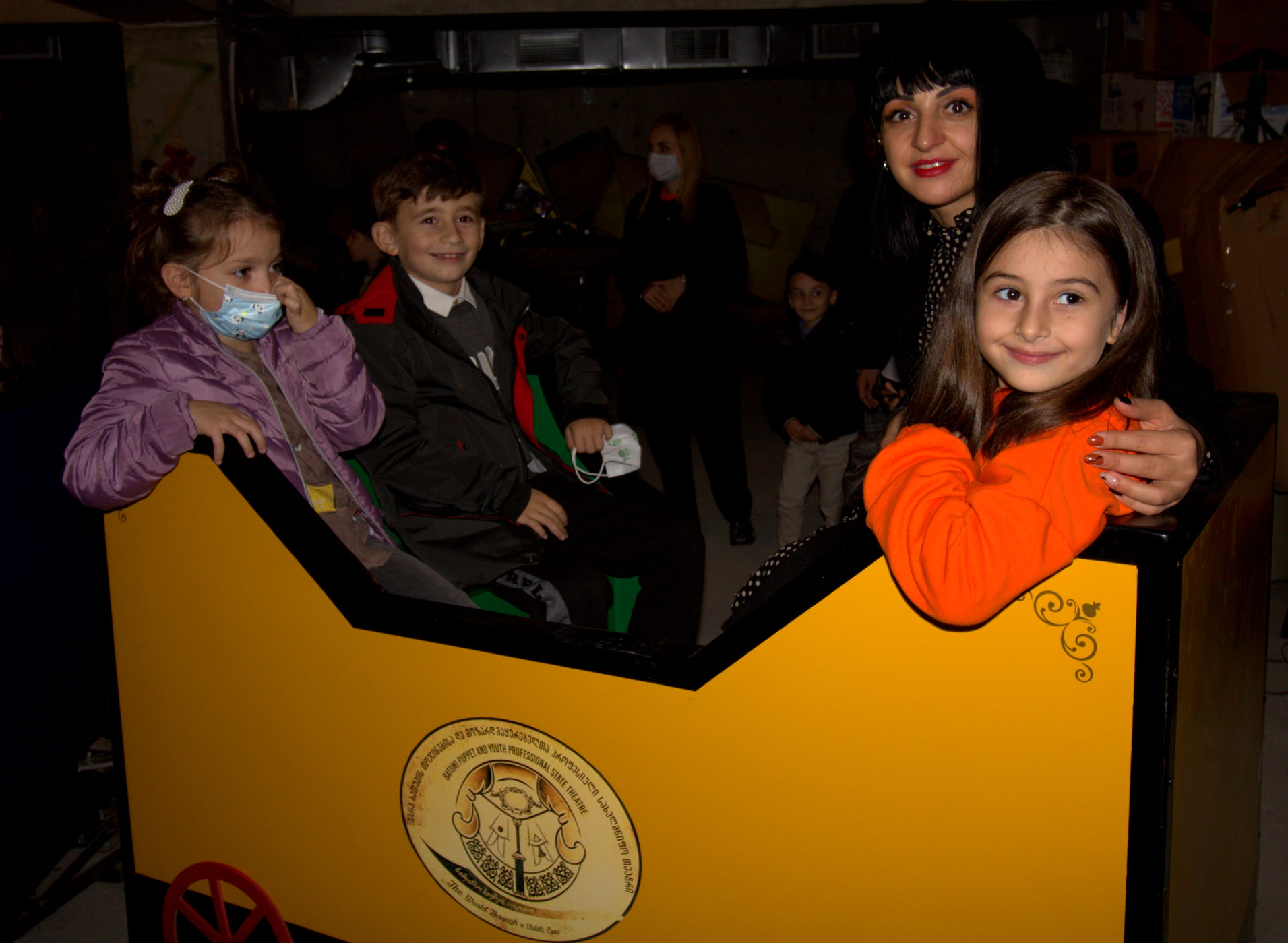 🟠 აღსაზრდელებმა ფერად დეკორაციებში იმოგზაურეს თეატრის საბავშვო მატარებლით.
