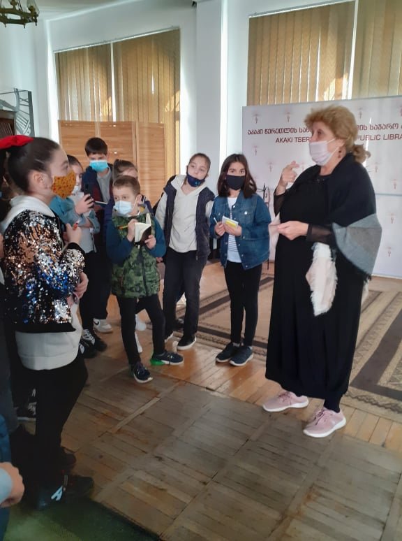 მოსწავლეებს მასპინძლობა გაუწია ბიბლიოთეკის დირექტორის მოადგილემ, ქალბატონმა ლილი ჭყონიამ.