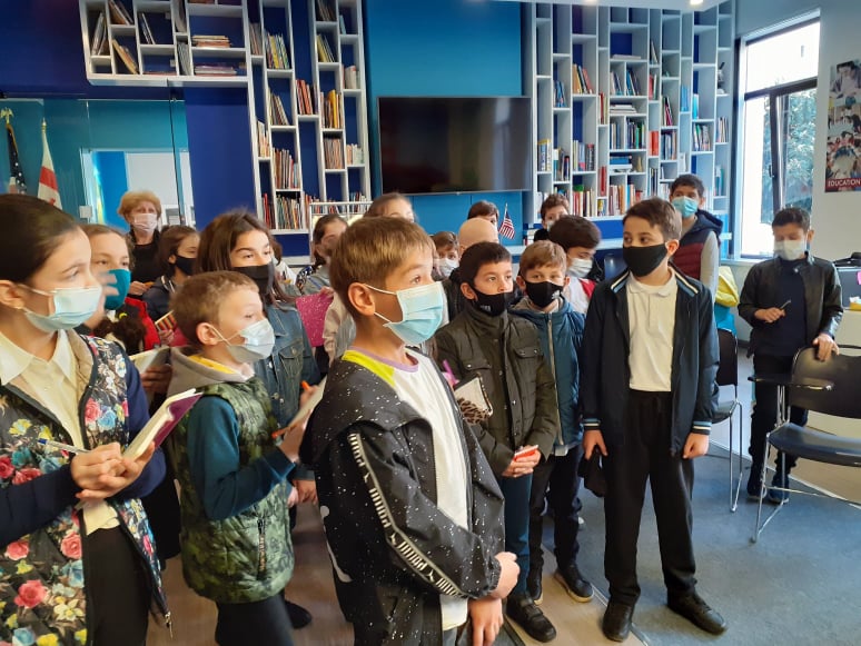 მოსწავლეებმა დაათვალიერეს წიგნსაცავი, საბავშვო განყოფილება, ამერიკული კუთხე, მოინახულეს სამკითხველო დარბაზები.