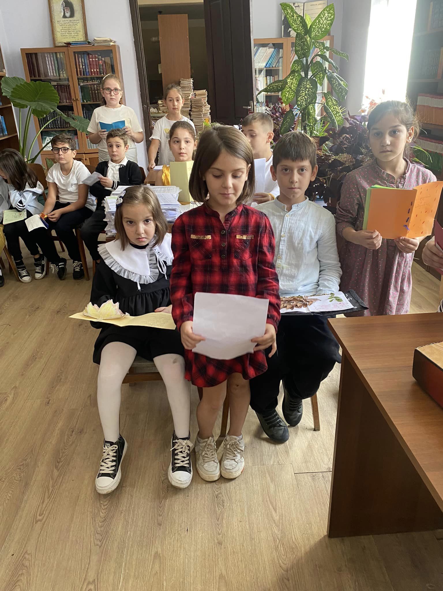 მოსწავლეები მოეფერნენ წიგნსა და შემოდგომას.