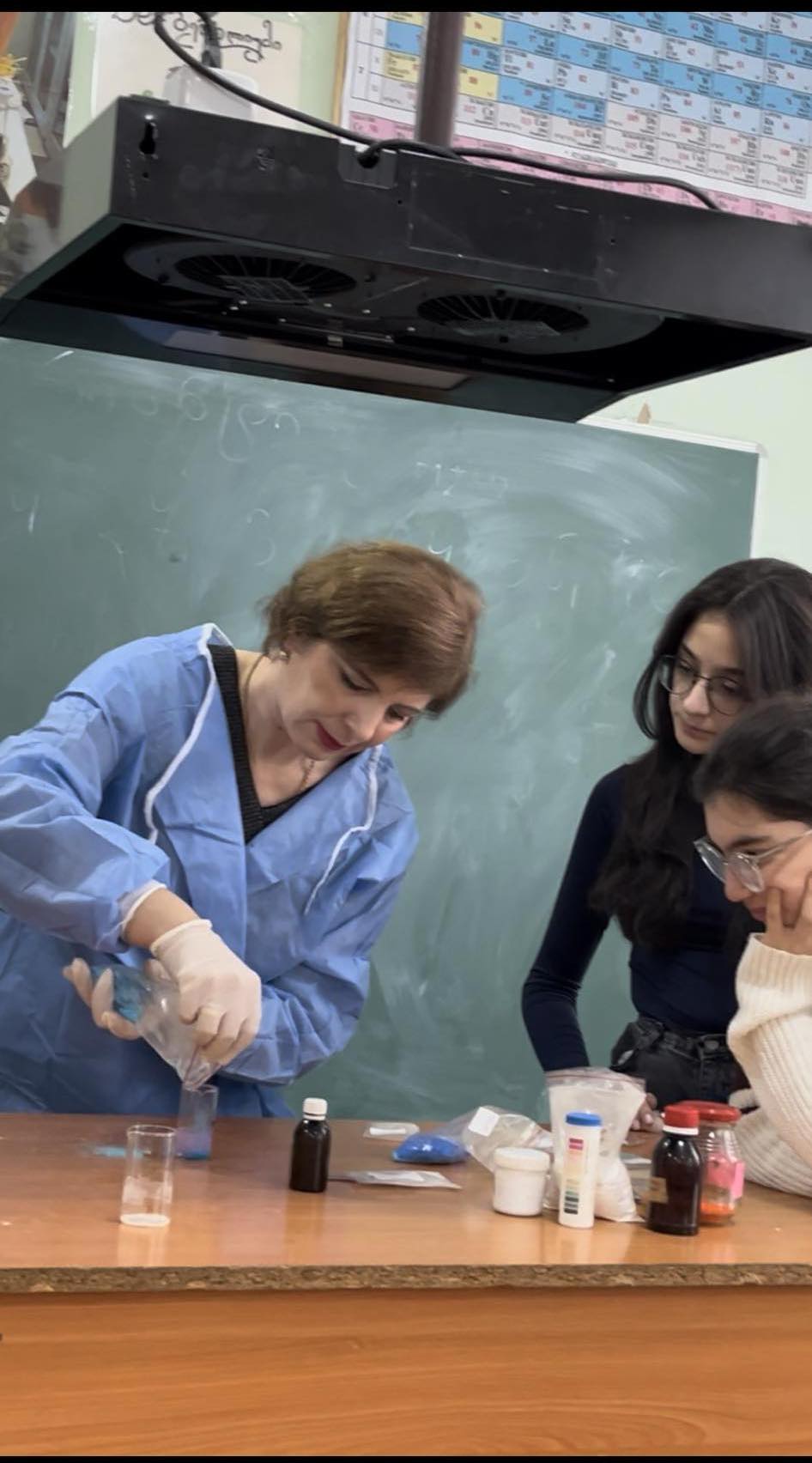 სსიპ-ქალაქ ბათუმის N8 საჯარო სკოლის 4 პარალელურ მეცხრე კლასში ქიმიის გაკვეთილზე (ქიმიის პედაგოგი - შორენა მუხაშავრია) ჩატარდა პრაქტიკული სამუშაო, რომელიც ეხებოდა ნაერთთა კლასებს, კერძოდ ნეიტრალიზაციის რეაქციებს, ტუტეების და ხსნადი ფუძეების მიღებას, მარილთა მიღების რამდენიმე ხერხს, მეტალების ურთიერთქმედებას მჟავებთან, ნაერთთა კლასების ურთიერთქმედებას ინდიკატორებთან.