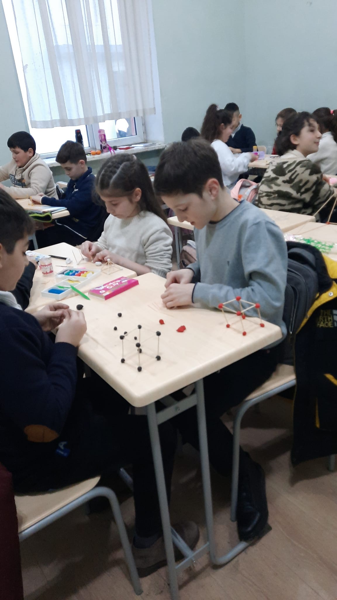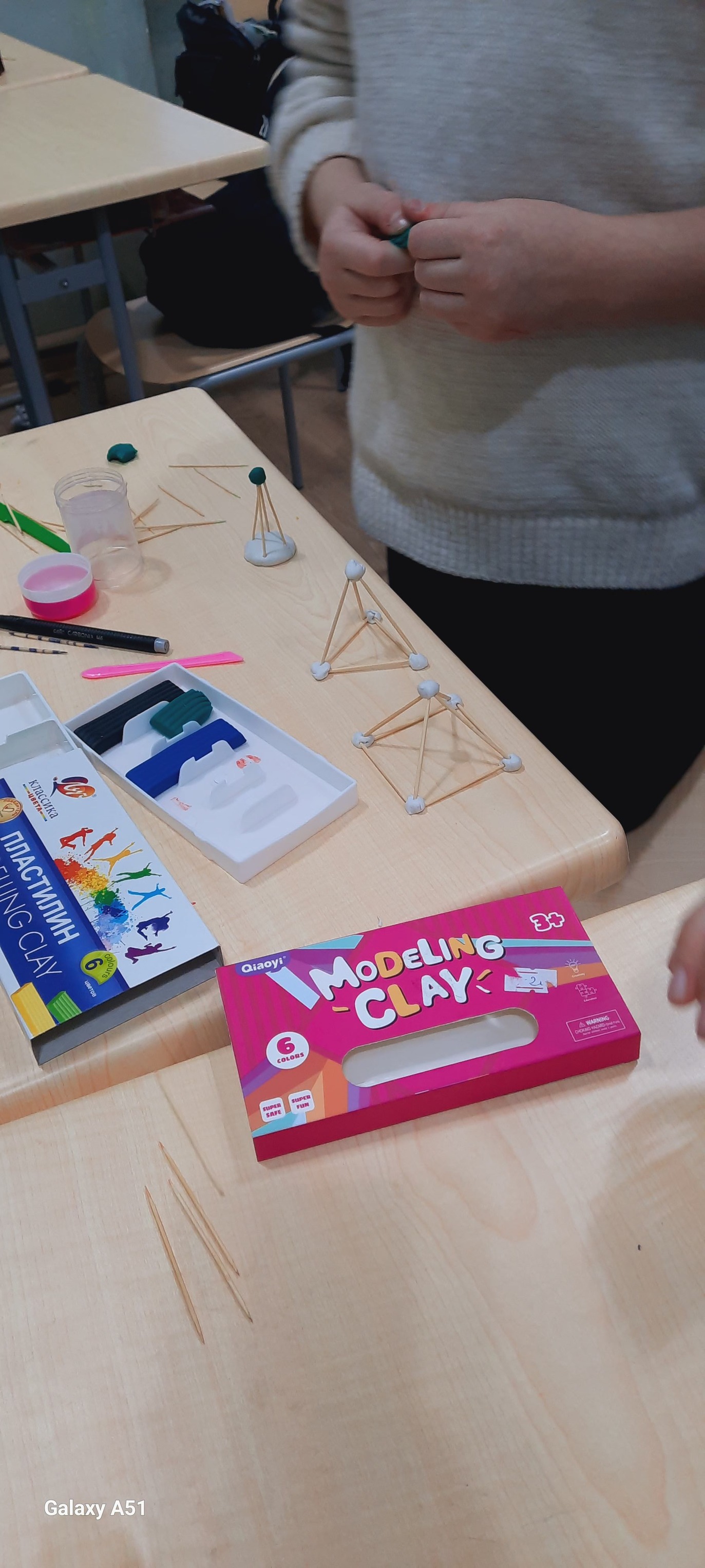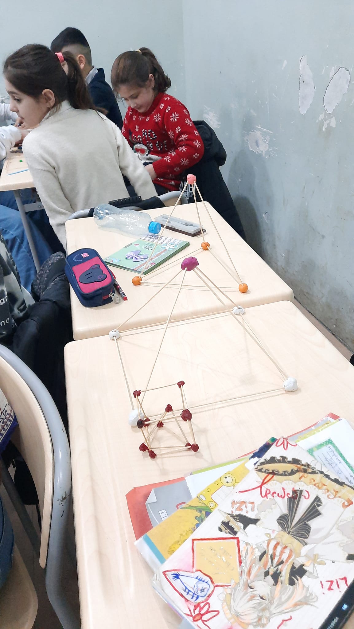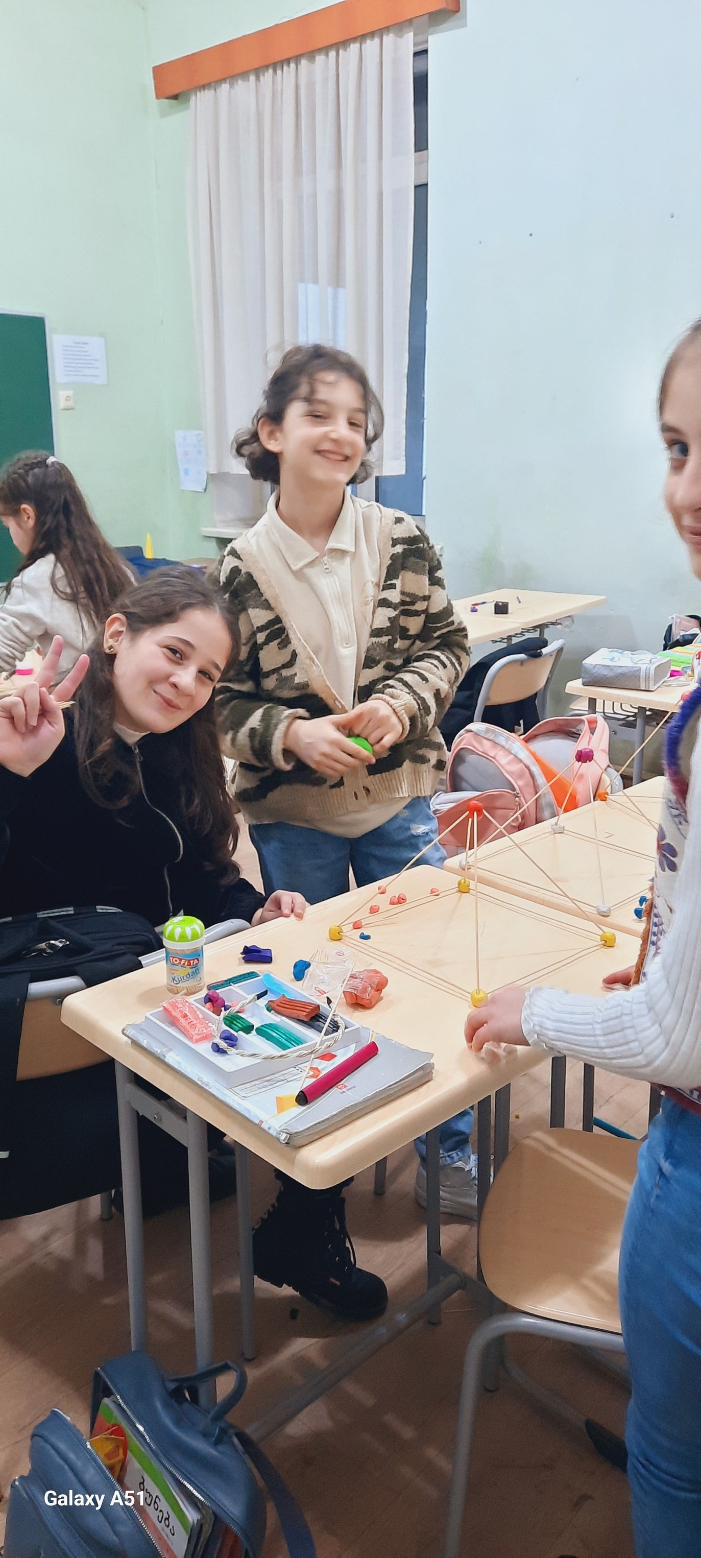 მათემატიკის პედაგოგმა ცირა ბოლქვაძემ ბავშვების მეტი დაინტერესებისა და უკეთ აღქმისათვის, საგაკვეთილო პროცესში გამოიყენა პრაქტიკული მაგალითებით გაჯერებული სივრცითი ფიგურები (რესურსი: პლასტენინი, ჩხირები).