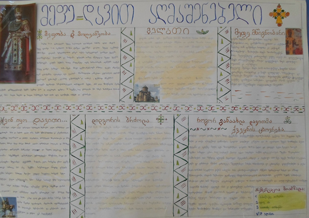 2013 წლის 8 თებერვალს სკოლის სააქტო დარბაზში გაიმართა დავით აღმაშენებლისადმი მიძღვნილი ღონისძიება. ეს იყო სკოლის მოსწავლეთა თვითმმართველობისა და სამოქალაქო კლუბის ერთობლივი პროექტი. ნიკა გრიგოლიამ, სალომე დეკანაძემ და ანა ფოთელიძემ წაიკითხეს ნაწყვეტები დავით აღმაშენებლის ბიოგრაფიიდან, გ.ორბელიანის პოემიდან „სადღეგრძელო“, დავით აღმაშენებლის „გალობანი სინანულისანი“. აჩვენეს მოსახლეობასთან ჩაწერილი ინტერვიუები. მოსწავლეებს შესთავაზეს მინი ვიქტორინა, რომელშიც გაიმარჯვა მურთაზ მჭედლიძემ, სიგელით დაჯილდოვდა VI-დ კლასი ბანერების წარმოდგენისათვის(მასწ. ეთერ ლომთაძე).