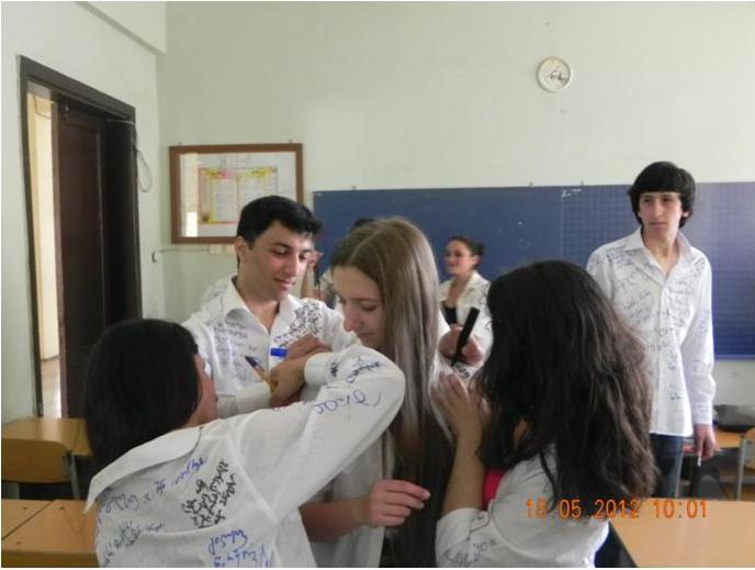 18 მაისს მთელი ქვეყნის მასშტაბით გამოსაშვები კლასის მოსწავლეები სკოლის დასრულებას აღნიშნავდნენ. ტრადიციულად მე-12 კლასელები სკოლაში ნახატებიანი პერანგებითა და წინსაფრებით გამოცხადნენ, რომლებზეც ისინი ერთმანეთს სამახსოვრო წარწერებს უკეთებდნენ. გაკვეთილების შემდეგ XIIბ კლასის მოსწავლეებმა სააქტო დარბაზში გამართეს კონცერტი, ბოლოს მოსწავლეებს მისასალმებელი სიტყვით მიმართა სკოლის დირექტორმა გივი ხალვაშმა.